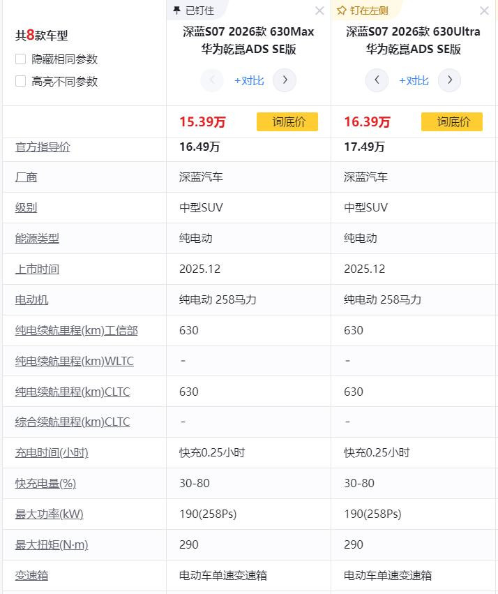 价格和购车政策方面,全新深蓝S07华为乾崑630长续航版推出了630 Max华为乾崑ADS SE版与630 Ultra华为乾崑ADS SE版两款车型,指导价分别为16.49万元和17.49万元。叠加限时权益后,实际到手价更具吸引力,在同级别车型中具备一定的价格优势。同时,品牌推出2年0息金融方案,有效降低了购车门槛,让更多消费者能够轻松入手。此外,还提供跨年购置税差额补贴,政策覆盖至2026年1月31日,即便年底没有时间购车,明年年初入手也能享受优惠。售后服务方面,品牌为首位车主提供三电系统终身质保政策,解决了用户的后顾之忧,同时全国范围内的服务网点较多,维修保养较为方便(具体详情可咨询当地经销商)。